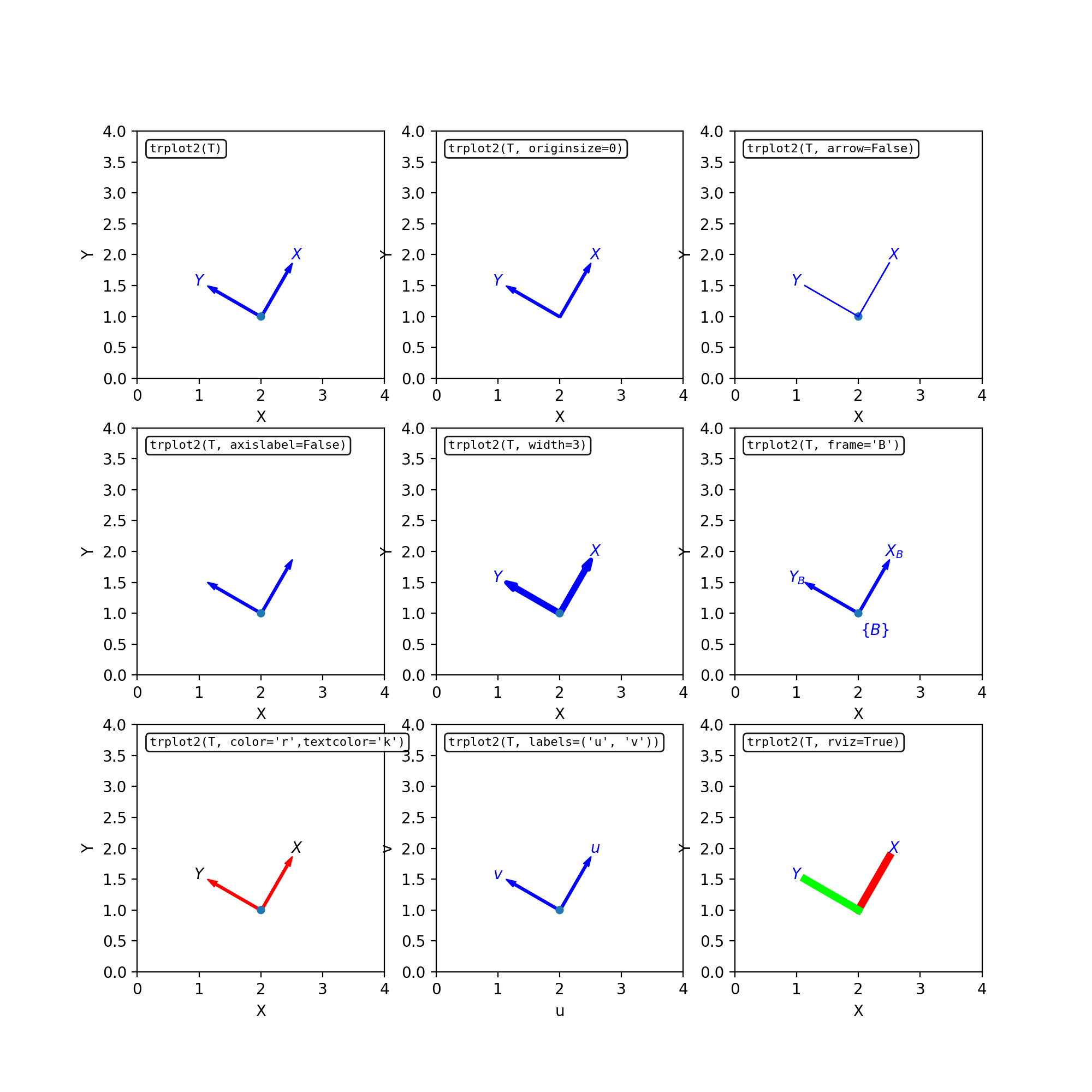 - trplot2(T, color='blue', frame=None, axislabel=True, axissubscript=True, textcolor=None, labels=('X', 'Y'), length=1, arrow=True, originsize=20, rviz=False, ax=None, block=None, dims=None, wtl=0.2, width=1, d1=0.1, d2=1.15, **kwargs)[source]