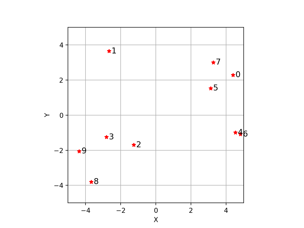 pand label them sequentially from 0:>>> p = np.random.uniform(size=(2,10), low=-5, high=5) >>> plotvol2(5) >>> plot_point(p, 'r*', '{0}')