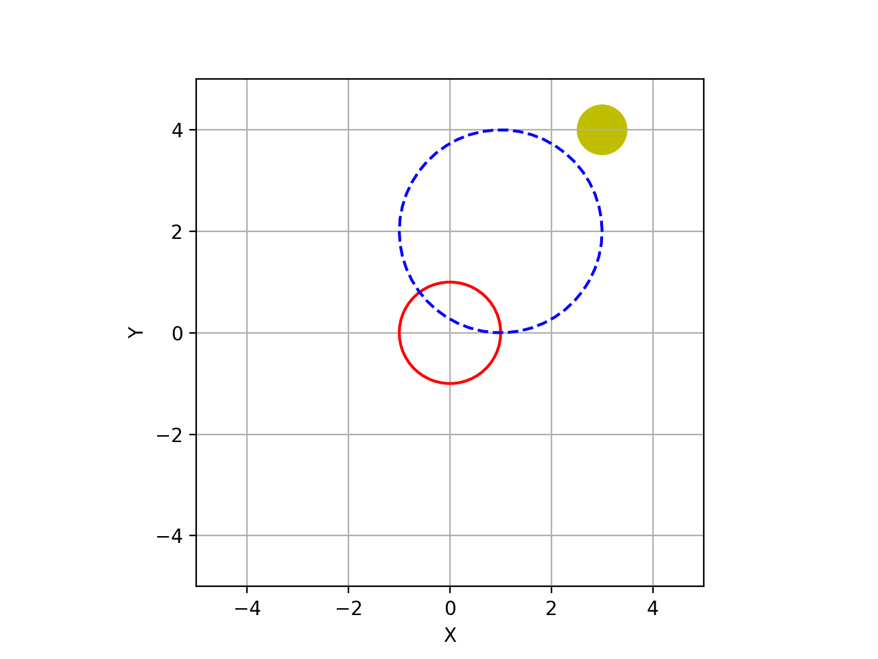 >>> from spatialmath.base import plotvol2, plot_circle >>> plotvol2(5) >>> plot_circle(1, (0,0), 'r') # red circle >>> plot_circle(2, (1, 2), 'b--') # blue dashed circle >>> plot_circle(0.5, (3,4), filled=True, facecolor='y') # yellow filled circle