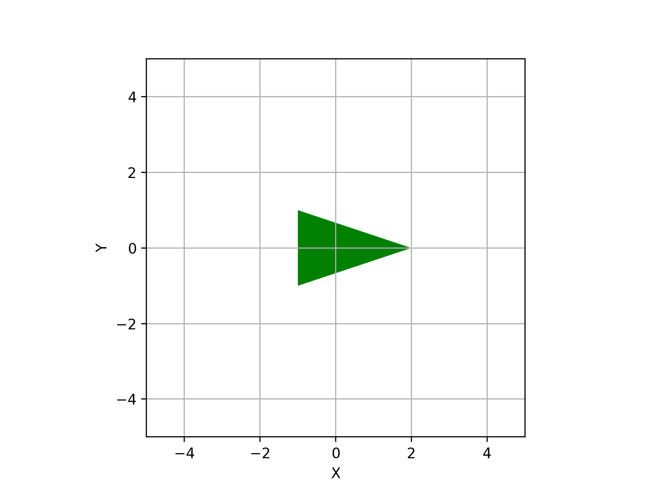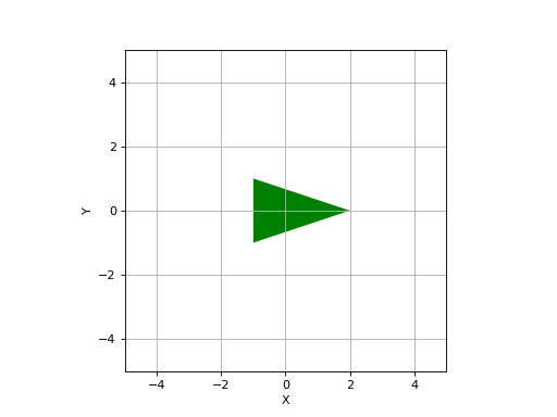 >>> from spatialmath.base import plotvol2, plot_polygon >>> plotvol2(5) >>> vertices = np.array([[-1, 2, -1], [1, 0, -1]]) >>> plot_polygon(vertices, filled=True, facecolor='g') # green filled triangle