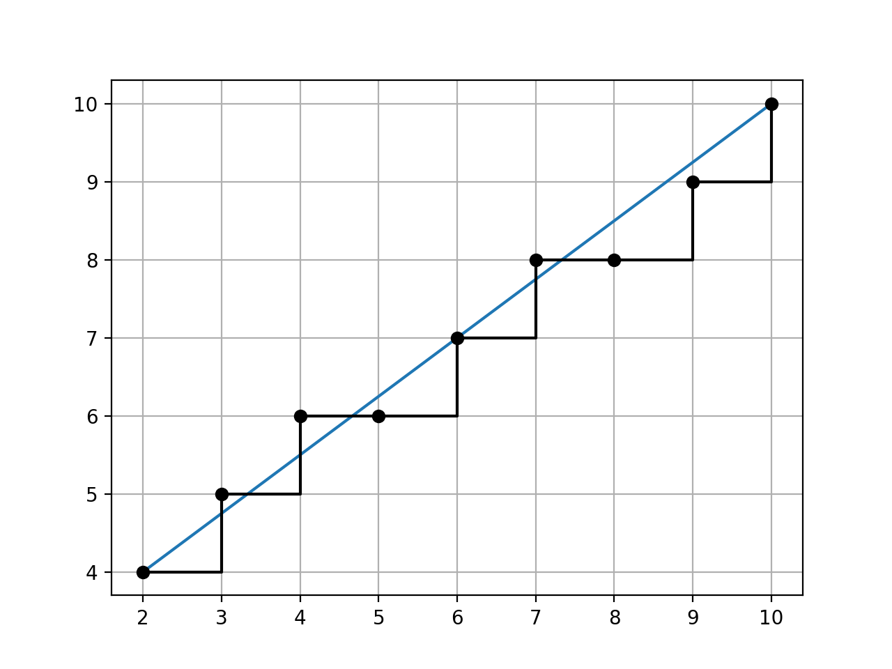>>> from spatialmath.base import bresenham >>> bresenham((2, 4), (10, 10)) (array([ 2, 3, 4, 5, 6, 7, 8, 9, 10]), array([ 4, 5, 6, 6, 7, 8, 8, 9, 10]))